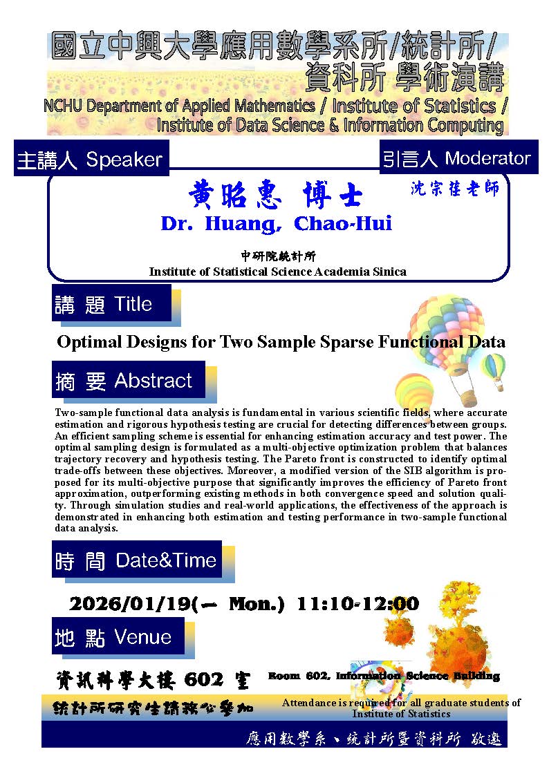 中興大學應用數學系演講通知(Lecture Announcement)-黃昭惠博士 2026/01/19(一 Mon.) 11:10-12:00